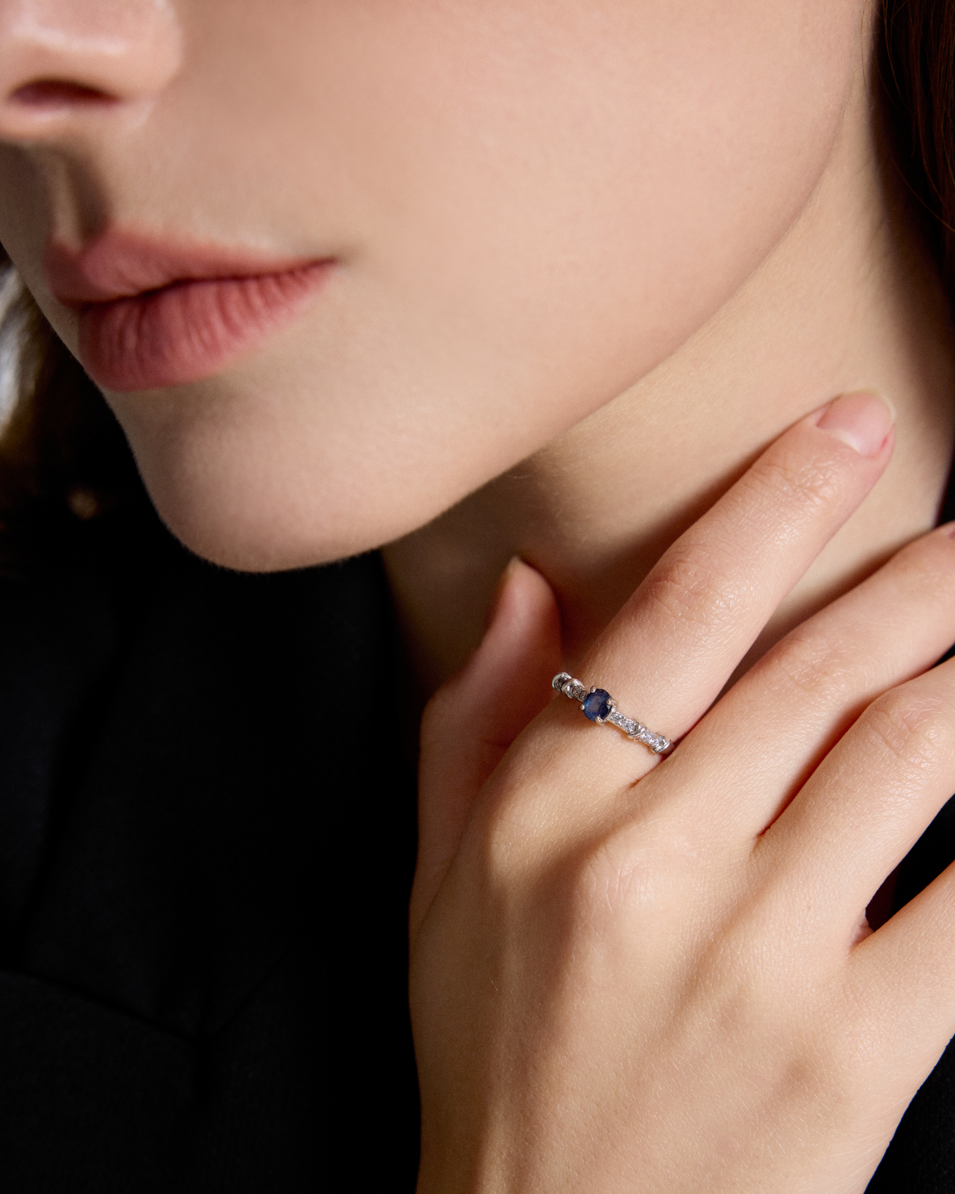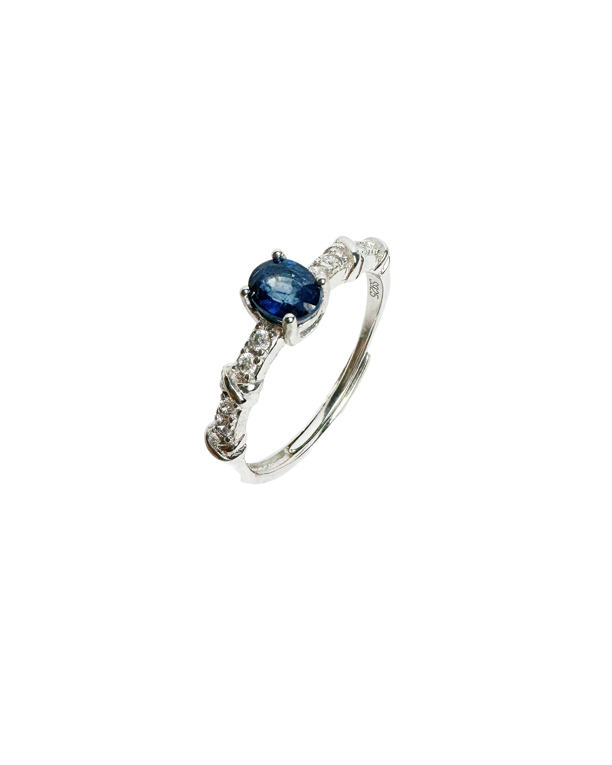 This refined ring features a 0.4 ct natural blue sapphire, set in 925 sterling silver and accented with eight sparkling cubic zirconia along the sides. A timeless design that adds a touch of sophistication, perfect for everyday wear or special occasions.