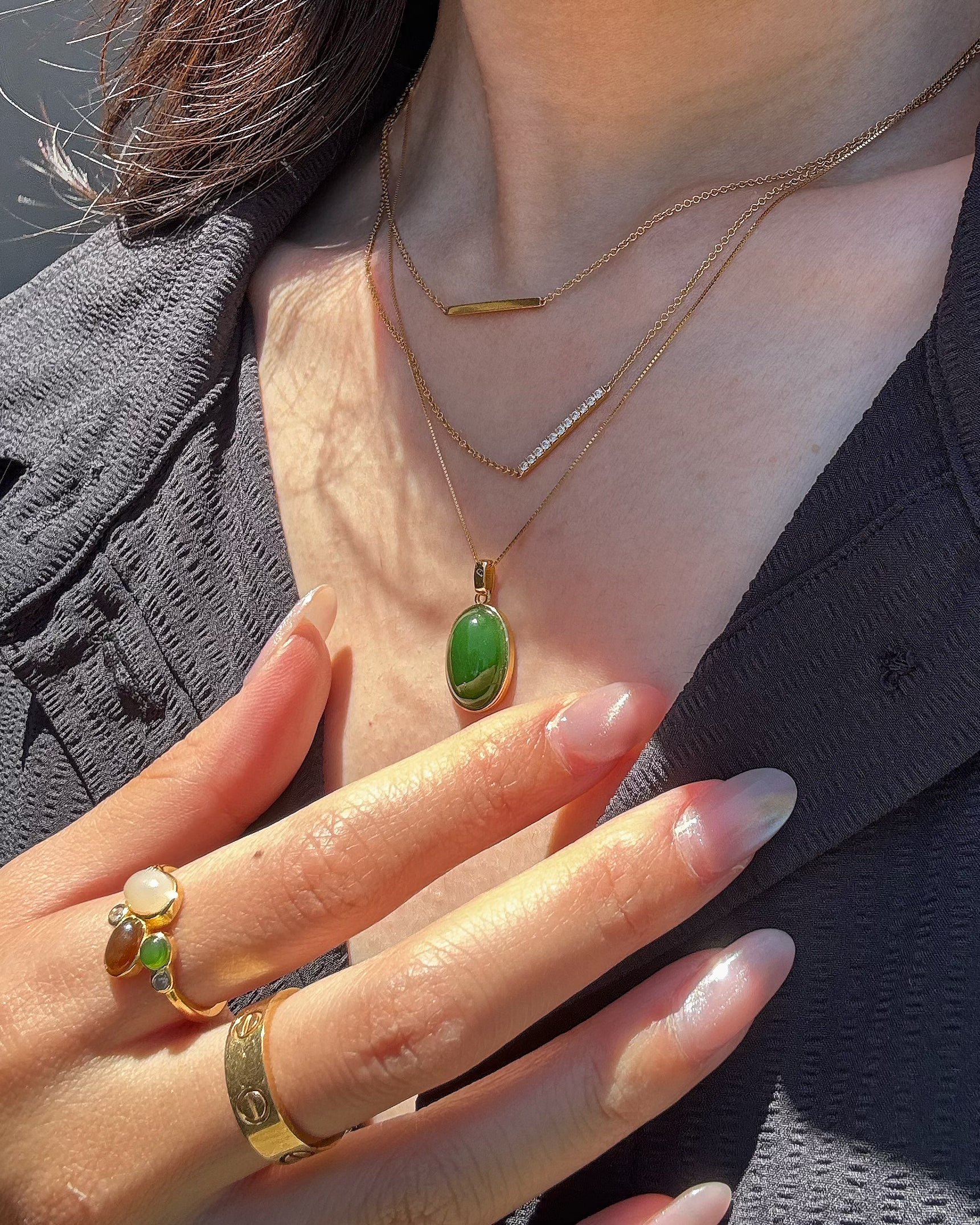 I was on the hunt for a special gift for my mom, who has always had a deep love for jade. This oval jade pendant caught my eye, and the quality is simply unbelievable in person. It looks regal :) The delicate gold chain is catches the sunlight in the most beautiful way. This pendant is such a beautiful, simple, yet amazing addition to any outfit and for any occasion. It's versatile enough to be worn to work for a touch of elegance or on a special evening out. I know my mom will absolutely cherish it (or maybe I'll just keep it ;))