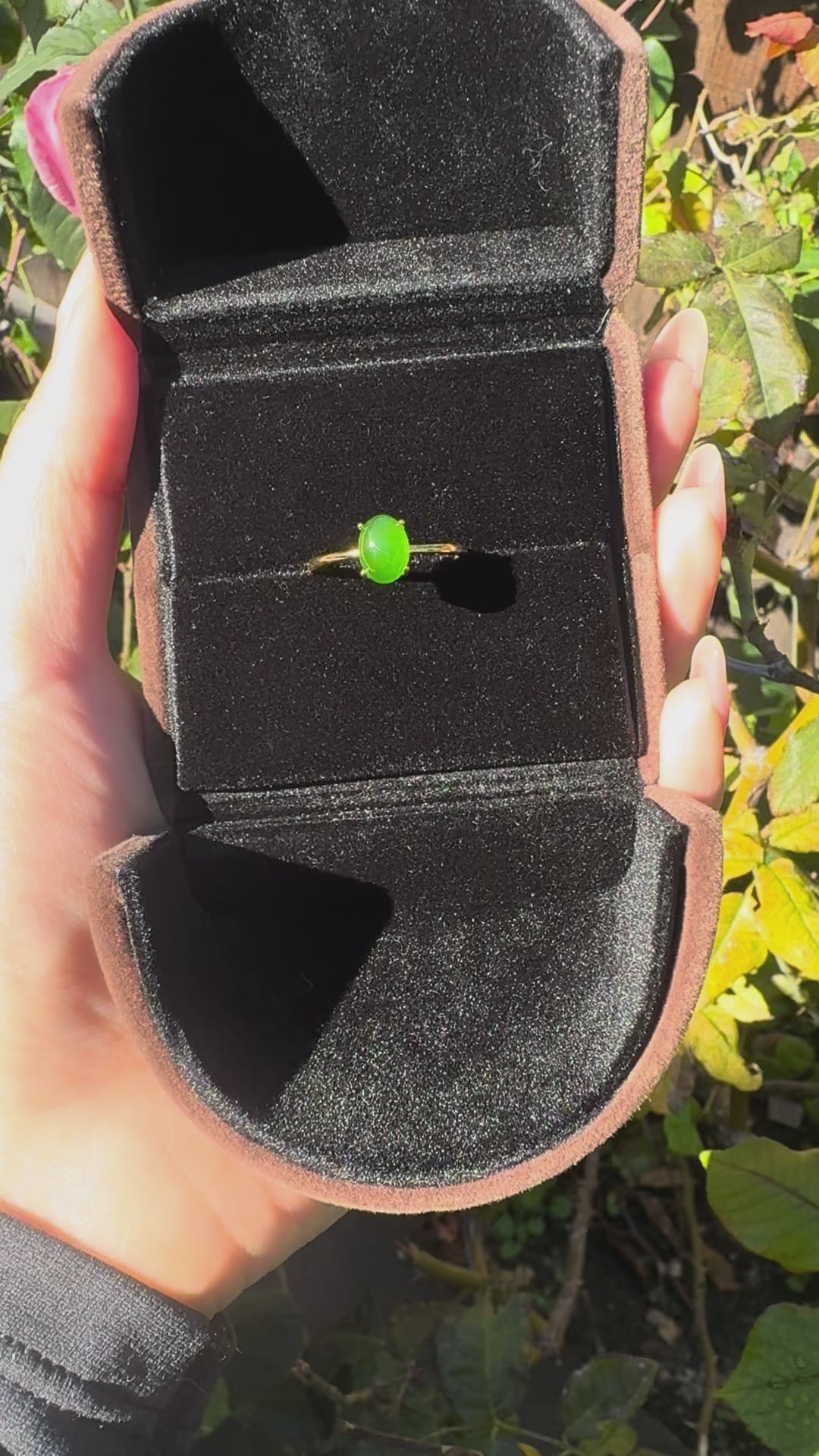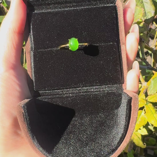 A modern take on timeless jade. This minimalist design features a 6×8 mm natural green nephrite jade stone set at the center, paired with a 24K gold-plated silver band for a refined, effortless glow. Elegant with every outfit and designed for everyday wear, it pairs beautifully with our Oval Jade Pendant Silver Necklace for a cohesive look. Finished with an adjustable band for a comfortable, custom fit.