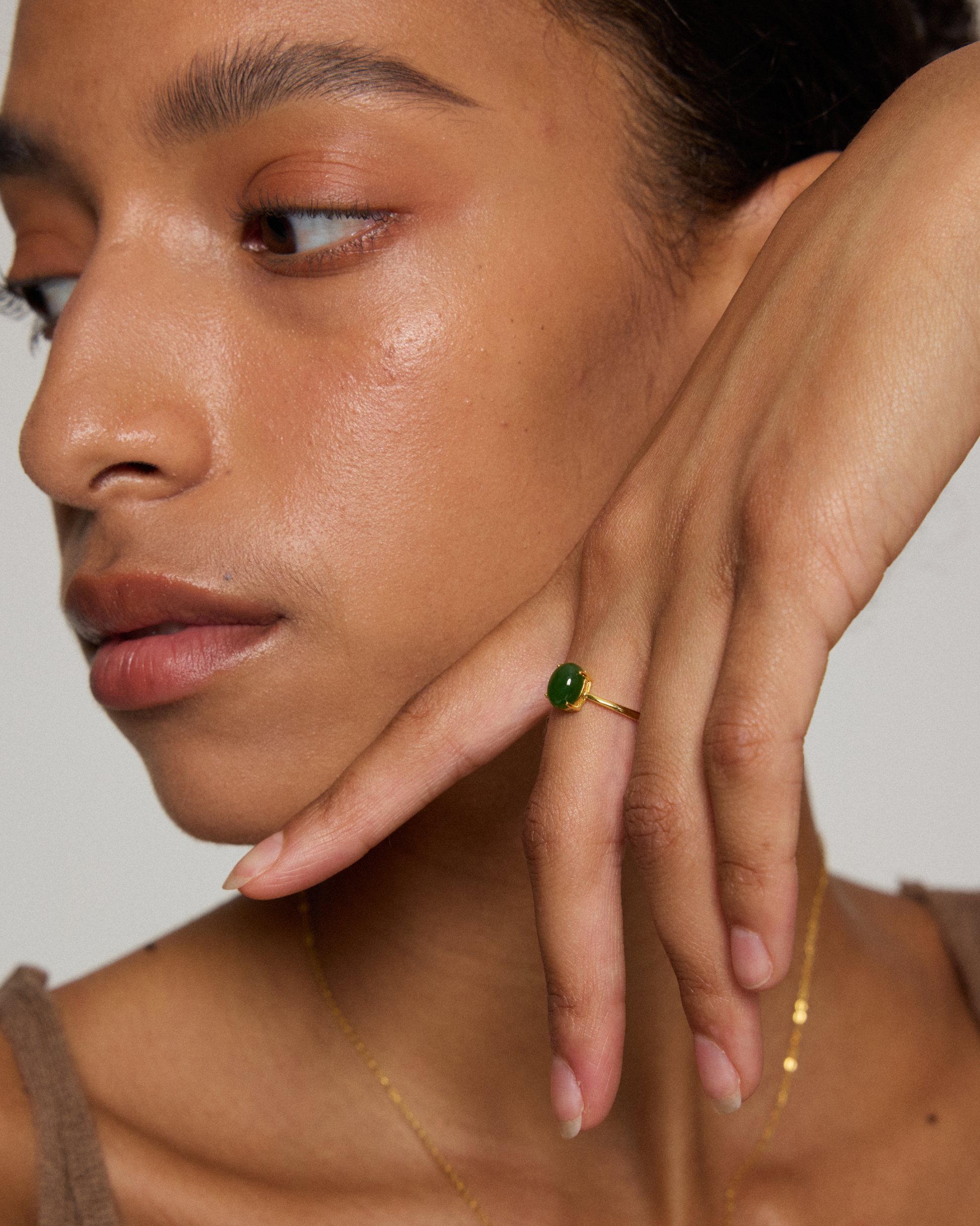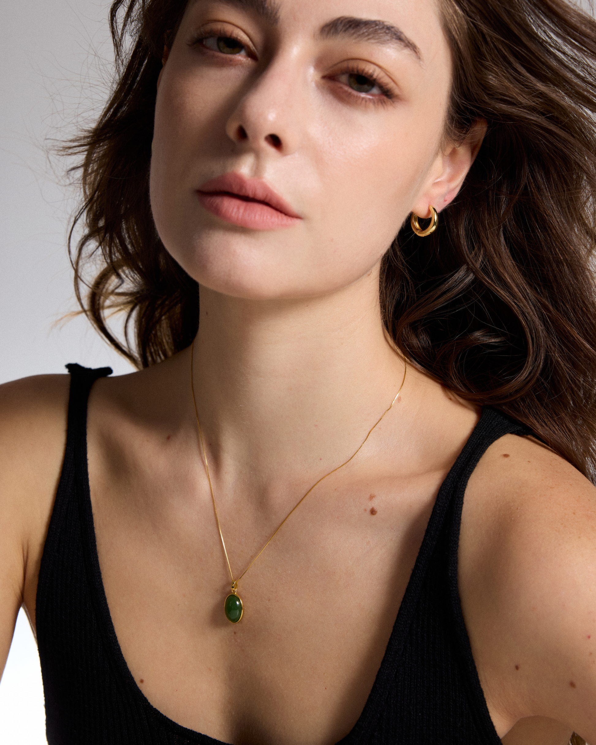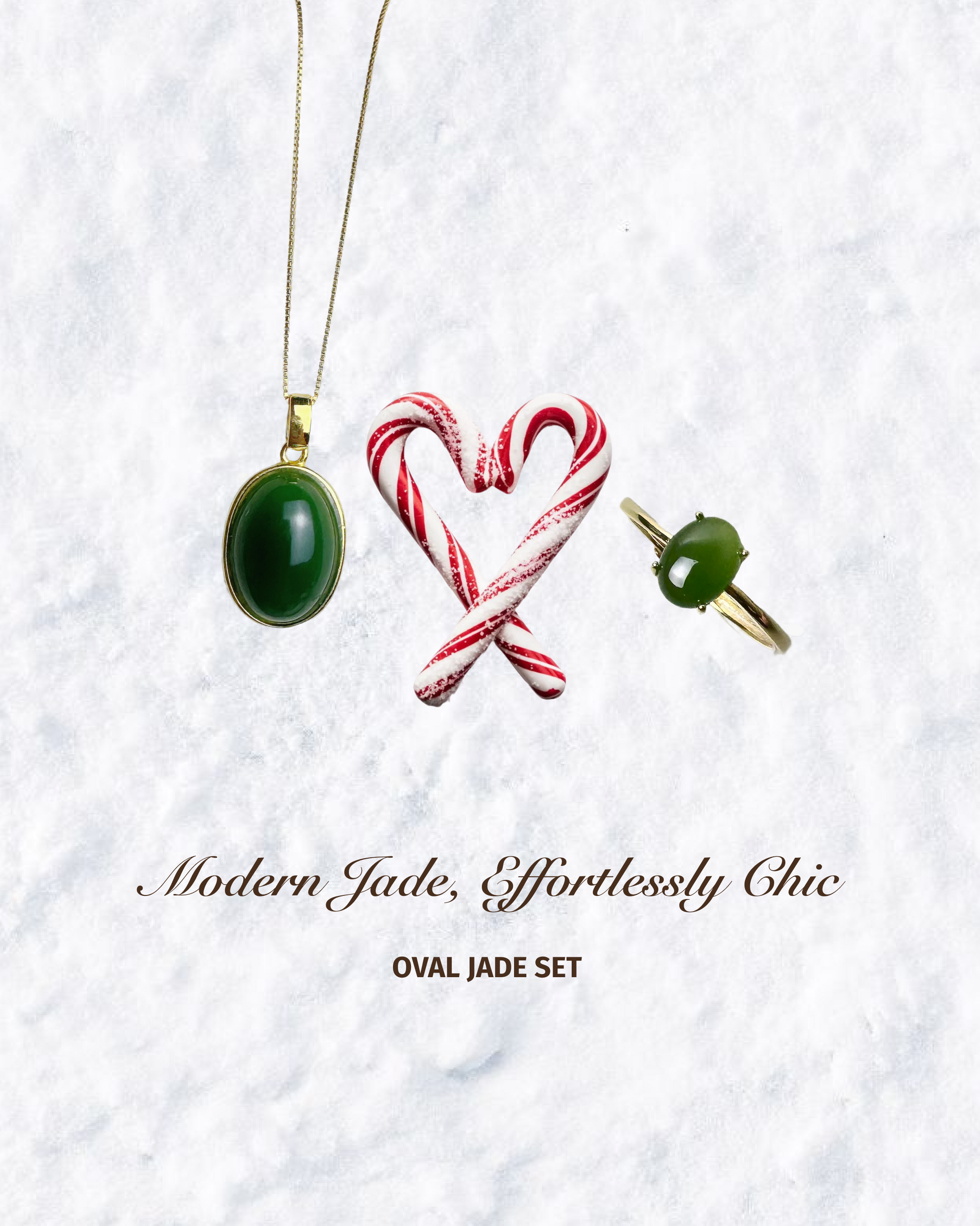 A modern pairing of our signature Oval Jade Pendant Necklace and Oval Jade Ring—crafted for those who appreciate refined simplicity. Each piece features fine-quality green nephrite jade set in gold-plated 925 sterling silver, creating a soft, natural glow that elevates any look.